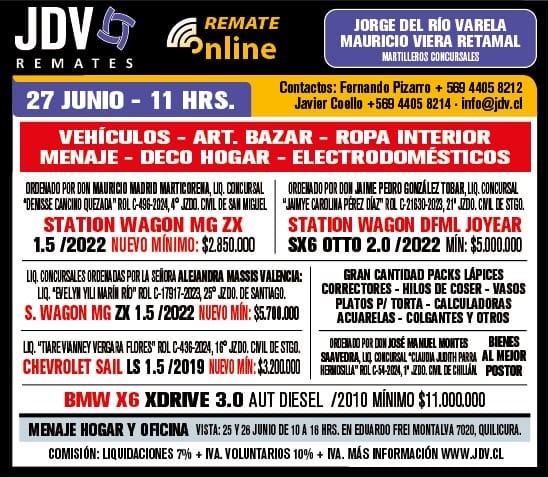 Remate Online Jueves 27 de Junio — 11:00 horas