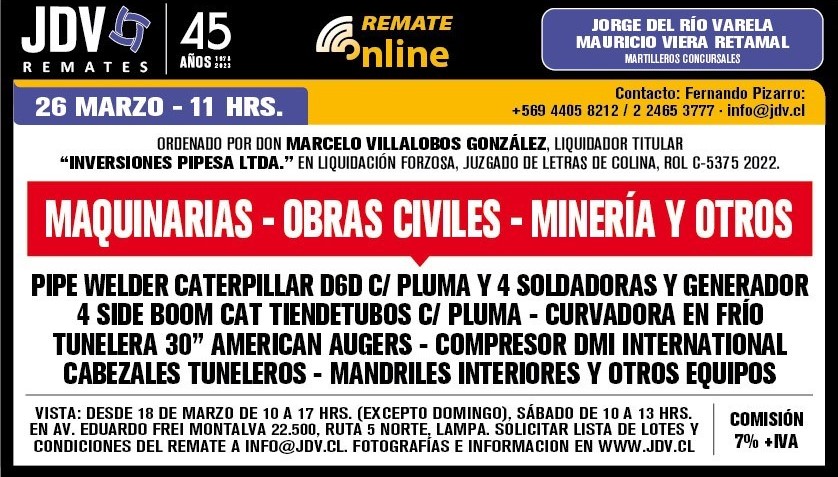 Maquinarias Para Obras Civiles, Minería y Otros.