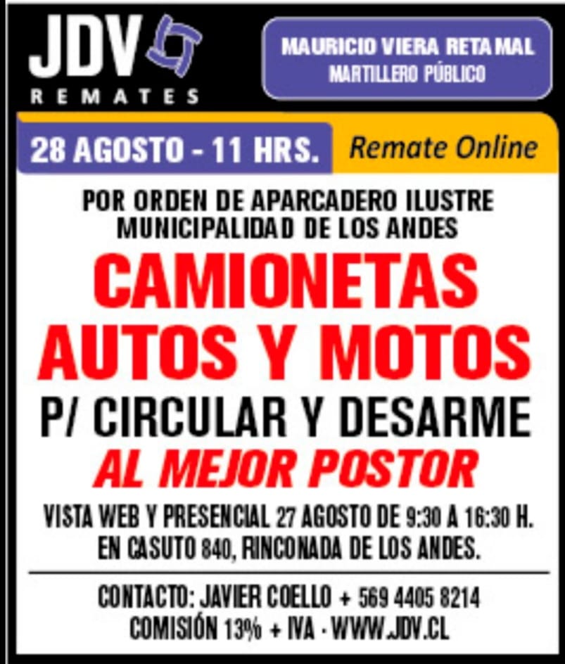Remate Online Miércoles 28 de Agosto — 11:00 horas