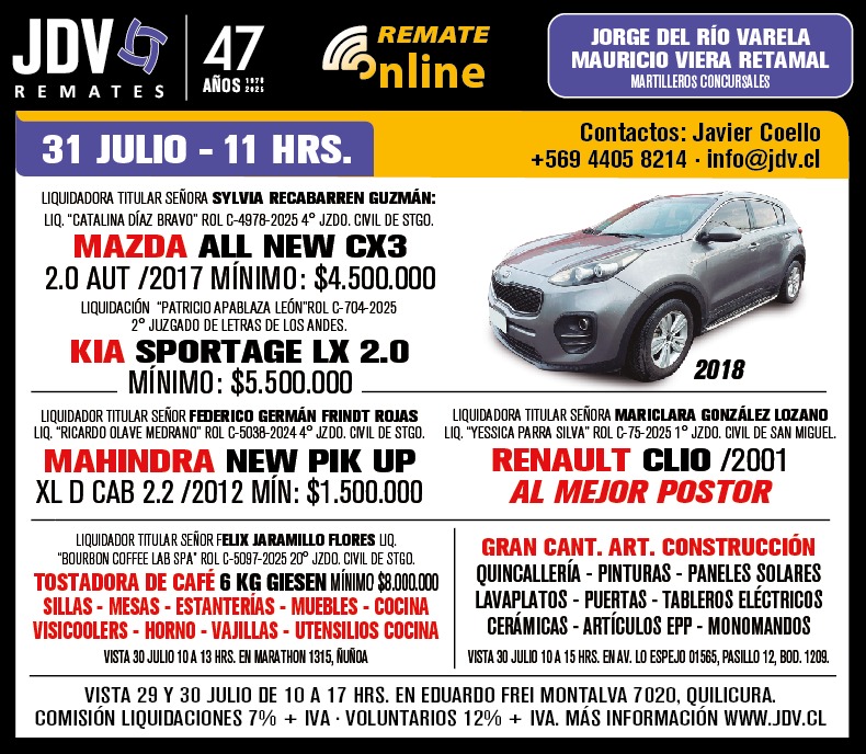 Remate Online JUEVES 31 DE JULIO — 11:00 horas