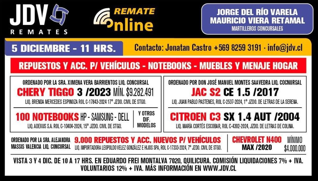 Remate Online Jueves 5 de Diciembre — 11:00 horas