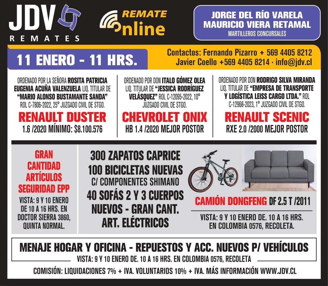 11-01-2024 – VEHICULOS-BICICLETAS-SOFAS-MATERIAL ELECTRICO-ARTICULOS DE SEGURIDAD EPP-MENAJE-REPUESTOS 2 años atrás
